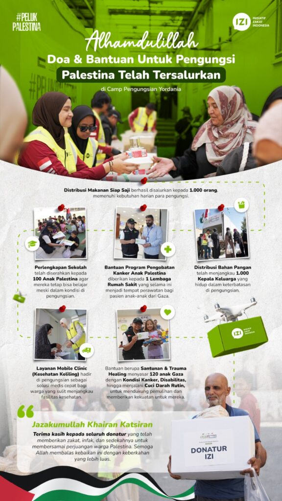 Alhamdulillah di bulan 24 Juli 2025, berkat dukungan para donatur, Inisiatif Zakat Indonesia (IZI) telah berhasil menyalurkan lebih dari 1.000 paket bantuan kepada pengungsi Palestina…